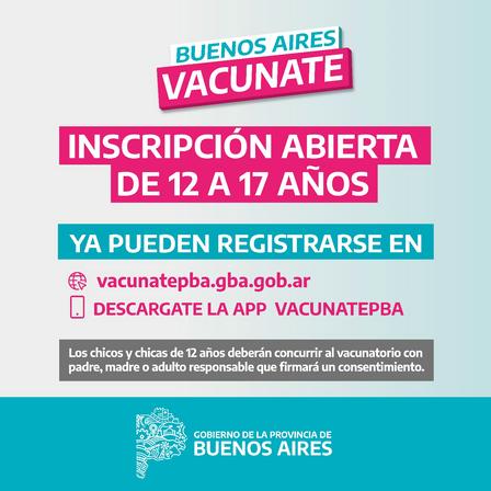 Continúa la inscripción para la vacunación de chicos de 12 a 17 años