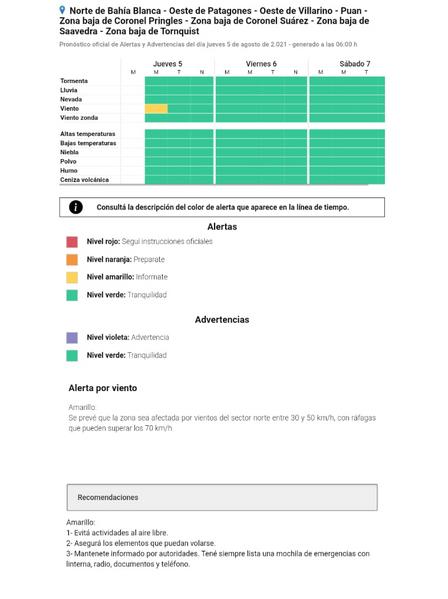 En el transcurso del día el Servicio Meteorológico Nacional confirmó la vigencia de un alerta