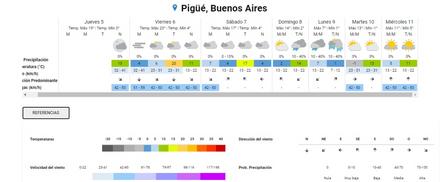 Se espera, para hoy, en la ciudad de Pigüé, una temperatura máxima de veinte grados.