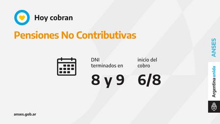 Las sucursales bancarias habilitadas atenderán por ventanilla solo a titulares de Pensiones No Contributivas que deban cobrar su haber de agosto con documentos terminados en 8 y 9.