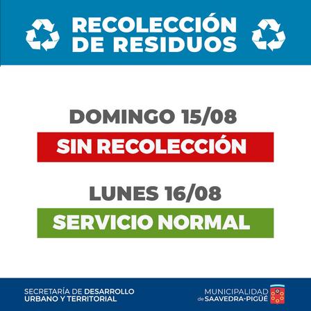 La Secretaría de Desarrollo Urbano y Territorial del Municipio confirmó que no habrá, el domingo, en Pigüé, recolección de residuos.