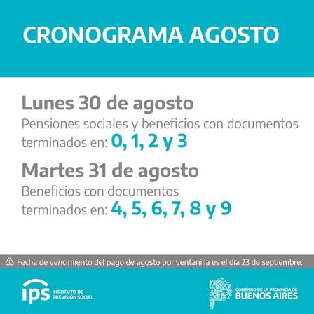 En agosto, el lunes 30, comienza el pago de haberes de agosto para jubilados y pensionados del Instituto de Previsión Social.
