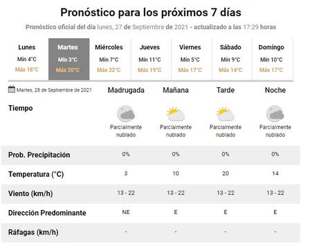 La sensación térmica, a la misma hora, en la localidad, era de medio grado centígrado hoy.
