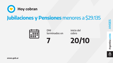 Las sucursales bancarias habilitadas atenderán por ventanilla a jubilados, jubiladas, pensionados y pensionadas con documentos terminados en 7 cuyos haberes no superen la suma de 29.135 pesos.