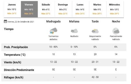 Se espera un viernes con nubosidad variable y probables tormentas en Pigüé.