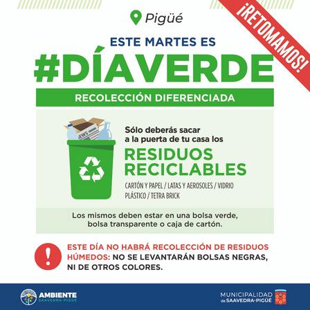 Realizan nuevamente hoy la recolección diferenciada en Pigüé