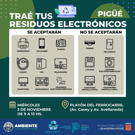Este miércoles, 3 de noviembre, mañana, de 9.00 a 13.00 horas, estarán recepcionando estos desechos en el playón del Ferrocarril, de Avenida Eduardo Casey esquina Avenida Avellaneda.