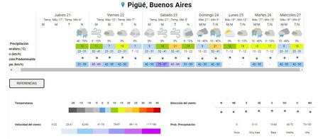 Se espera, para hoy, viernes, en la localidad de Pigüé, la presencia de vientos fuertes.