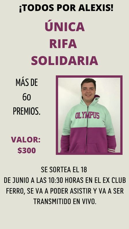 La rifa de 'Todos por Alexis' puede conseguirse en esa localidad con un total de 60 premios en juego.