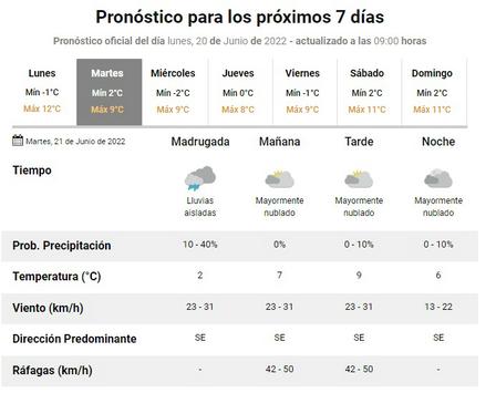 Durante el día de hoy, martes, en la ciudad, la temperatura más elevada podría alcanzar los nueve grados centígrados.