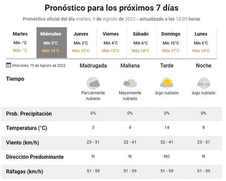 La sensación térmica, a la misma hora, era de dos grados bajo cero en Pigüé.