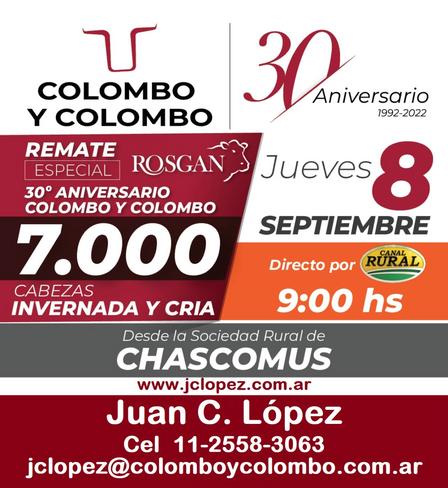 Colombo y Colombo anuncia 7.000 cabezas para el Rosgan Aniversario de mañana