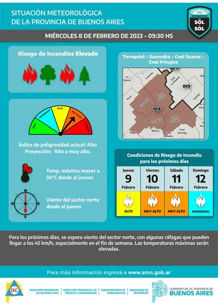 Defensa Civil confirmó que la Provincia de Buenos Aires difundió un alerta de alta posibilidad de incendios por las altas temperaturas, viento intenso y falta de lluvia.