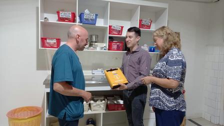 El Dr. Guillermo Tizón fue recibido por el Dr. Juan Piña para dialogar acerca de la situación actual del sanatorio, hablar de las necesidades locales, y entregar un desfibrilador externo automático.