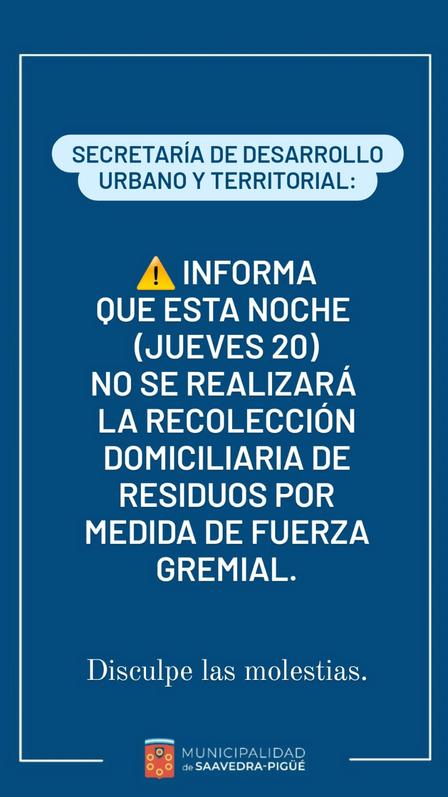 Por el paro de los trabajadores no tendrá lugar hoy el paso de los camiones municipales.