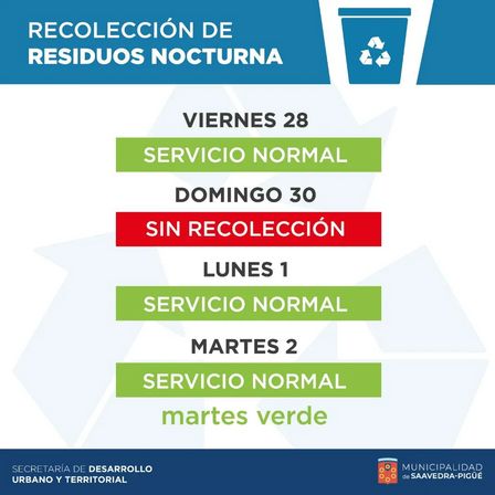 En la localidad de Pigūé el paso del camión recolector se dará desde hoy.