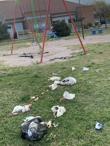 La plaza del lugar tiene desechos diseminados por distintos sectores.