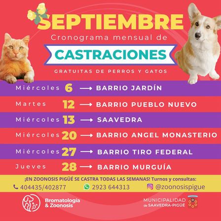 La grilla de las próximas jornadas de castraciones ya fue presentada