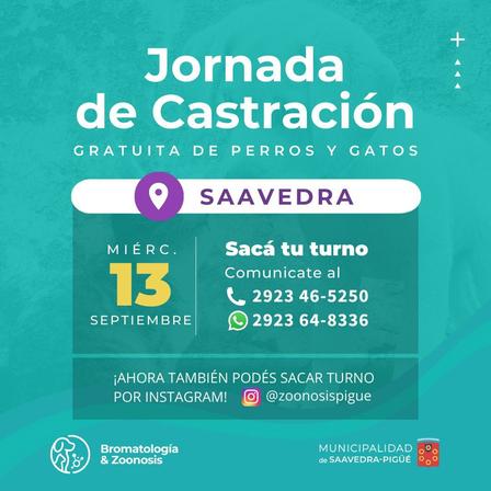 Hay castraciones de mascotas en la localidad de Saavedra.