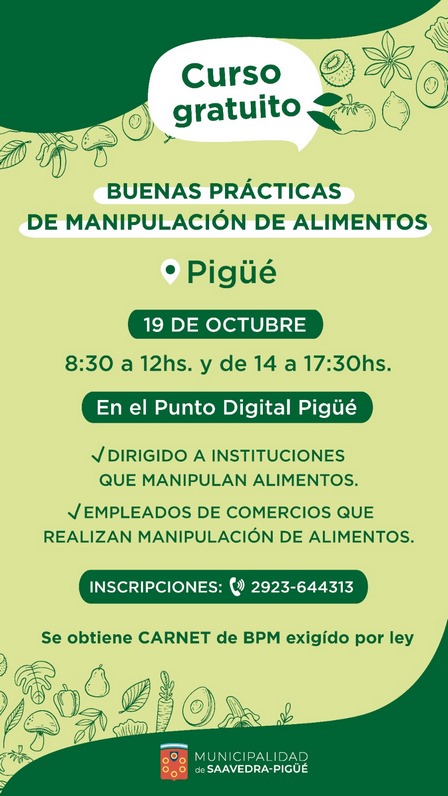 Las inscripciones, que son gratuitas, están realizándose, a través de Bromatología & Zoonosis, al 2923 64 43 13.Anterior
