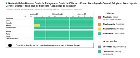 Esta advertencia rige para el día de hoy, martes, 23 de enero, por la tarde.