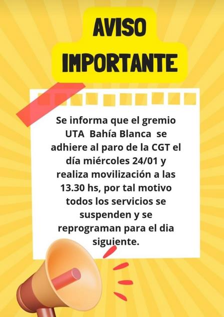 Durante el día de mañana, miércoles, 25 de enero de 2024, no habrá servicio de la empresa FECOS dejando sin el paso de los buses a las localidades de Pigüé, Saavedra, Colonia San Martín de Tours, Dufaur, Tornquist, Bahía Blanca y Coronel Suárez.