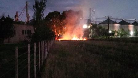 Ubicado a un lado de una planta de silos el espacio afectado por las llamas sufrió la quema de pastos naturales durante la noche de hoy.