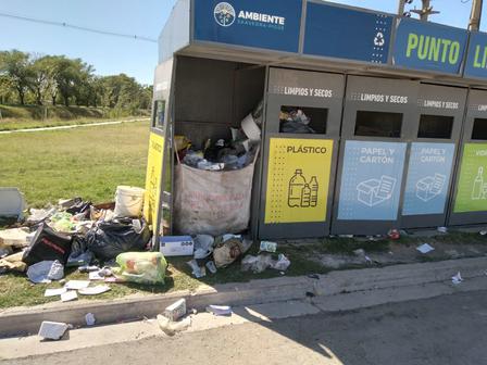 El Punto Limpio de Avenida Mitre esquina Guillermo Brown registra ahora una puerta rota, mientras que, en la semana, luego de la recolección, termina desbordado de desechos.