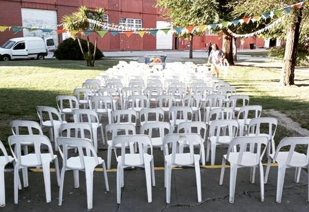 Durante el día lunes los operarios de la empresa recuperada estuvieron trabajando para acondicionar el entorno al aire libre donde hoy se hará la ceremonia.