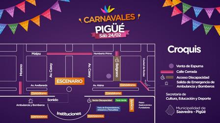 Por estas horas las autoridades presentaron un detalle de cómo estará dividido el sector donde se hará la celebración del Carnaval 2024 en Pigüé.