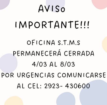 Estará cerrada, hasta este viernes, 8 de marzo, inclusive, la Oficina de la Secretaría del Sindicato de Trabajadores Municipales.