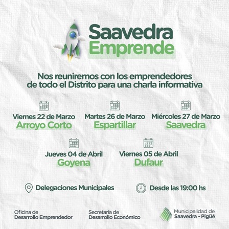 Este encuentro con emprendedores se realizará en el marco del Programa Saavedra Emprende.