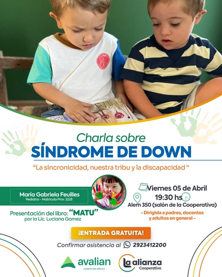 El título de 'La sincronicidad, nuestra tribu y la discapacidad' será el de la disertación a cargo de la Pediatra María Gabriela Feuilles, Matrícula Provincial 3228, contando con la presentación del libro 'Matu' de la Lic. Luciana Gómez.