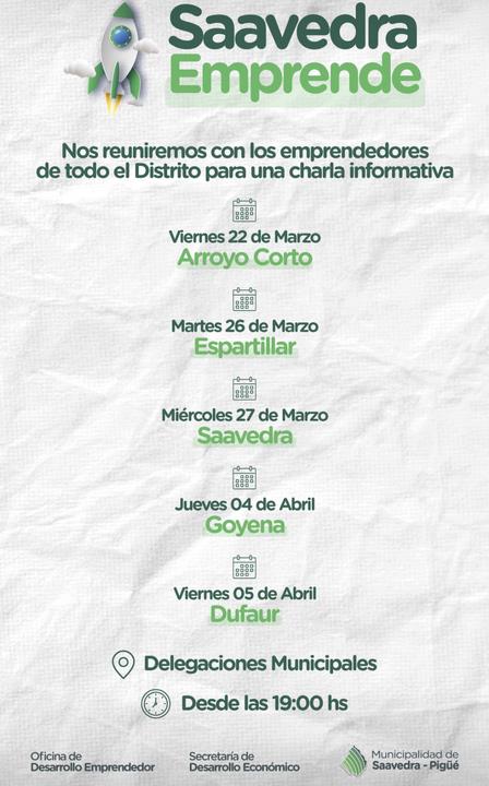 Este encuentro con emprendedores se realizará en el marco del Programa Saavedra Emprende.