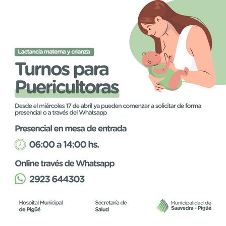 A partir de esta semana es posible solicitar turnos de forma presencial en el Hospital Municipal de Pigüé o a través del WhatsApp 2923 64 43 03.