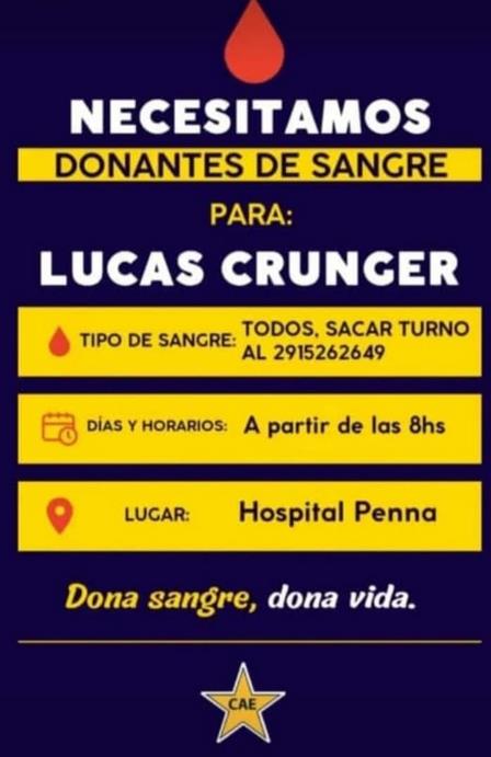 Requieren, en Bahía Blanca, aportes de sangre, de cualquier tipo, para un joven del Distrito de Saavedra, previo turno al 291 52 62 649.