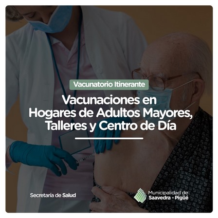 Durante el día de hoy, jueves 2 de mayo, el personal del Área de Vacunación del Hospital Municipal de Pigüé continuará realizando aplicaciones que llegan a los Hogares de Adultos Mayores, el Taller Protegido y el Centro de Día Amanecer.