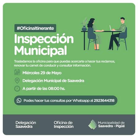 La Oficina Itinerante de Inspección Municipal estará en Saavedra