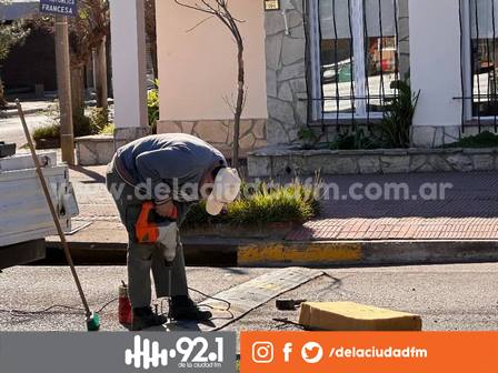 Trabajan sobre un reductor de velocidad, en Avenida Eduardo Casey esquina 9 de Julio, de allí que está interrumpida la circulación vehicular.