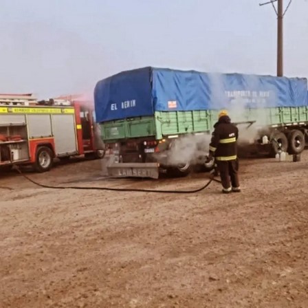 Los servidores públicos de la ciudad de Pigüé, en horas de la mañana, hoy, viernes, realizaron tareas para combatir un principio de incendio en el acoplado de un camión de cargas.