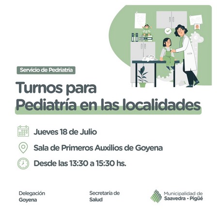 Por la tarde, luego de las 13.30 horas, hasta las 15.30 horas, tendrá lugar la presencia de un profesional de la medicina en la Sala de Atención de la Salud de Goyena.
