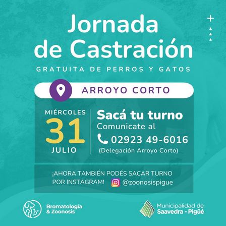 En Arroyo Corto se hará, el día miércoles 31 de julio, la castración gratuita de mascotas