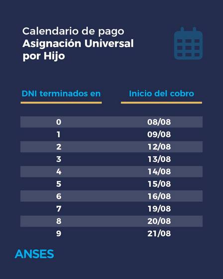 Mañana, martes, los pagos de la Asignación Universal por Hijo se harán para quienes tienen DNI finalizado en 3.