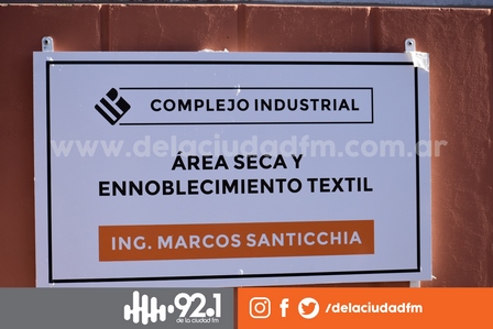 En el sector del predio fabril correspondiente al Área Seca y de Ennoblecimiento Textil del Complejo Industrial figura ahora el nombre del Ing. Marcos Santicchia