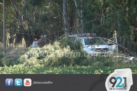 Un eucaliptus golpeó sobre el cableado de alta tensión, ocasionando, con la caída de este al piso, la presencia de llamas, que debieron ser sofocadas rápidamente por los Bomberos Voluntarios.