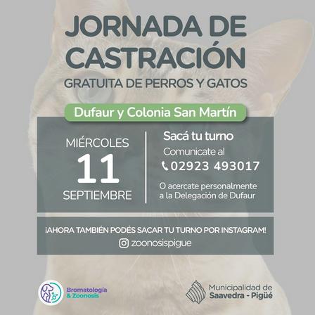 En la Delegación Municipal de Dufaur, este miércoles 11 de septiembre, habrá castración gratuita de mascotas.