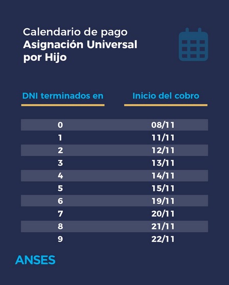 El martes venidero, 19 de noviembre, los desembolsos de la Asignación Universal por Hijo son para quienes tienen DNI con terminación en 6.