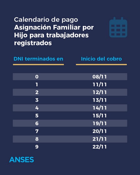Está activo el calendario de los pagos de la Asignación Familiar por Hijo para trabajadores registrados