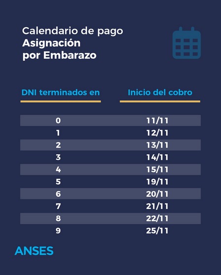 El martes venidero estos pagos de la Asignación por Embarazo, son para quienes tienen DNI culminado en 5