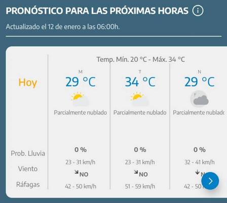 La máxima podría llegar a los treinta y cuatro grados centígrados contando con vientos de hasta 59 kilómetros por hora.
